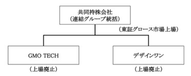 両社は、共同株式移転の方法により共同持株会社「GMO TECHホールディングス株式会社」を設立し、持株会社体制へ移行します。この結果、GMO TECHおよびデザインワンは設立される共同持株会社の完全子会社となり、上場廃止となります。