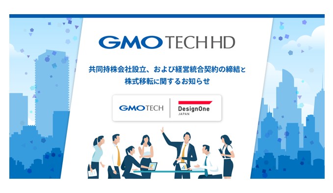 GMOインターネットグループでインターネット上の集客サービスを展開するGMO TECH株式会社(代表取締役社長CEO:鈴木 明人 以下、GMO TECH)と、株式会社デザインワン・ジャパン(代表取締役社長:高畠 靖雄 以下、デザインワン)は、本日、両社の取締役会決議に基づき、共同持株会社設立および経営統合に関する契約書を締結しました。