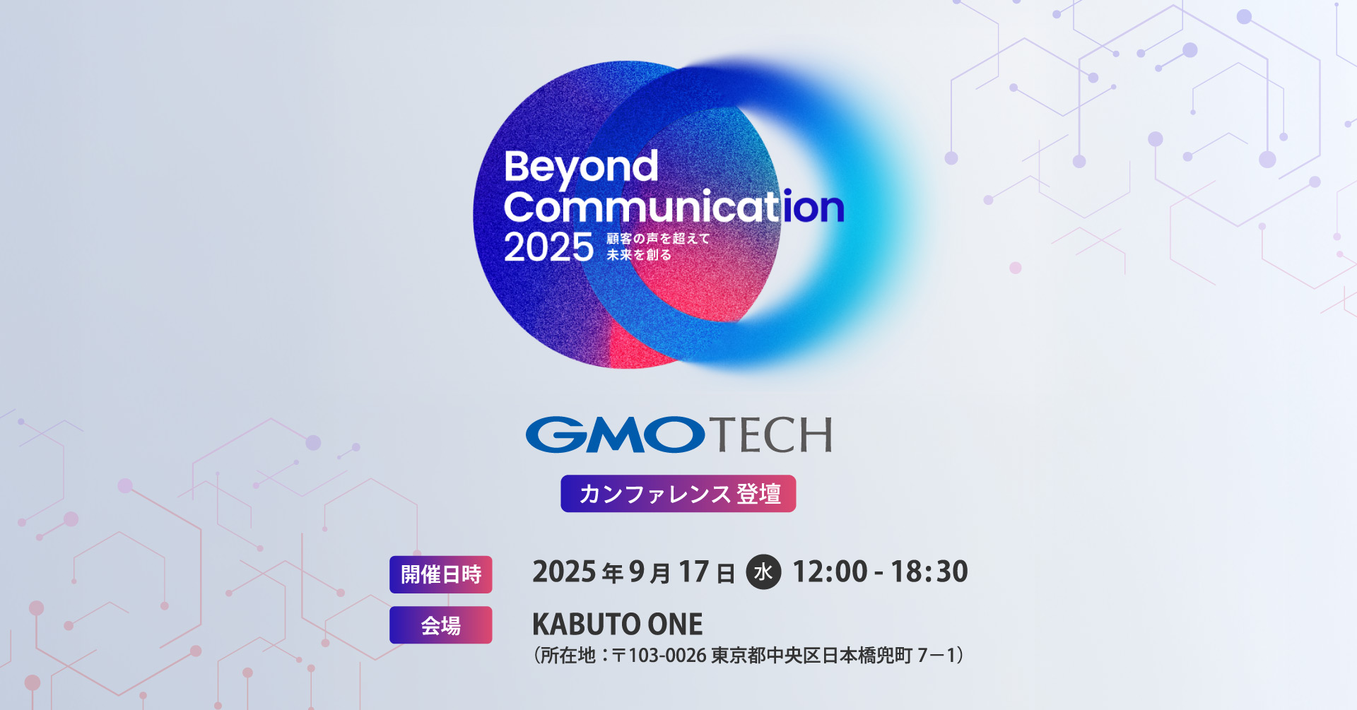 GMOインターネットグループでインターネット上の集客サービスを展開するGMO TECH株式会社(代表取締役社長CEO:鈴木 明人 以下、GMO TECH)は、2025年9月17日(水)に東京・日本橋で開催されるカンファレンス「Beyond Communication 2025」に登壇いたします。