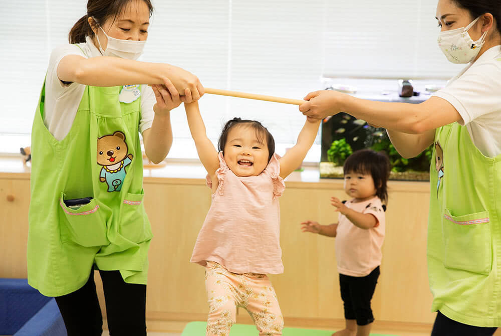 生後57日目以降から受け入れ可能なこの環境で、パパ・ママたちが安心して子どもを預けることができ、子どもたちものびのびと過ごせるような環境を保育士たちがバックアップします。